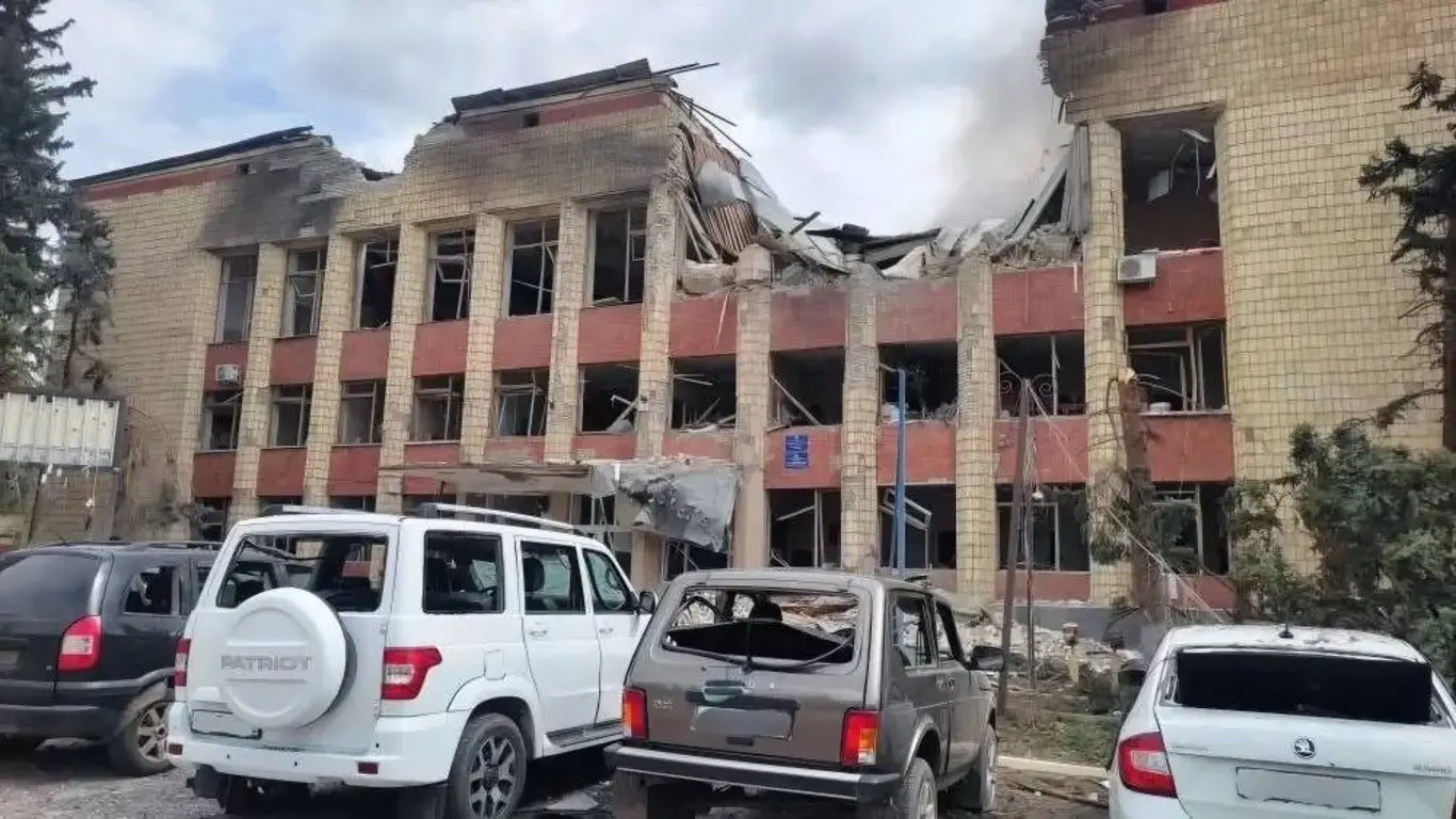 Административное здание получило серьезные повреждения. Тушение пожара осложнялось угрозой повторных ударов, однако сотрудники МЧС смогли оперативно ликвидировать возгорание. Сейчас проводится разбор завалов.