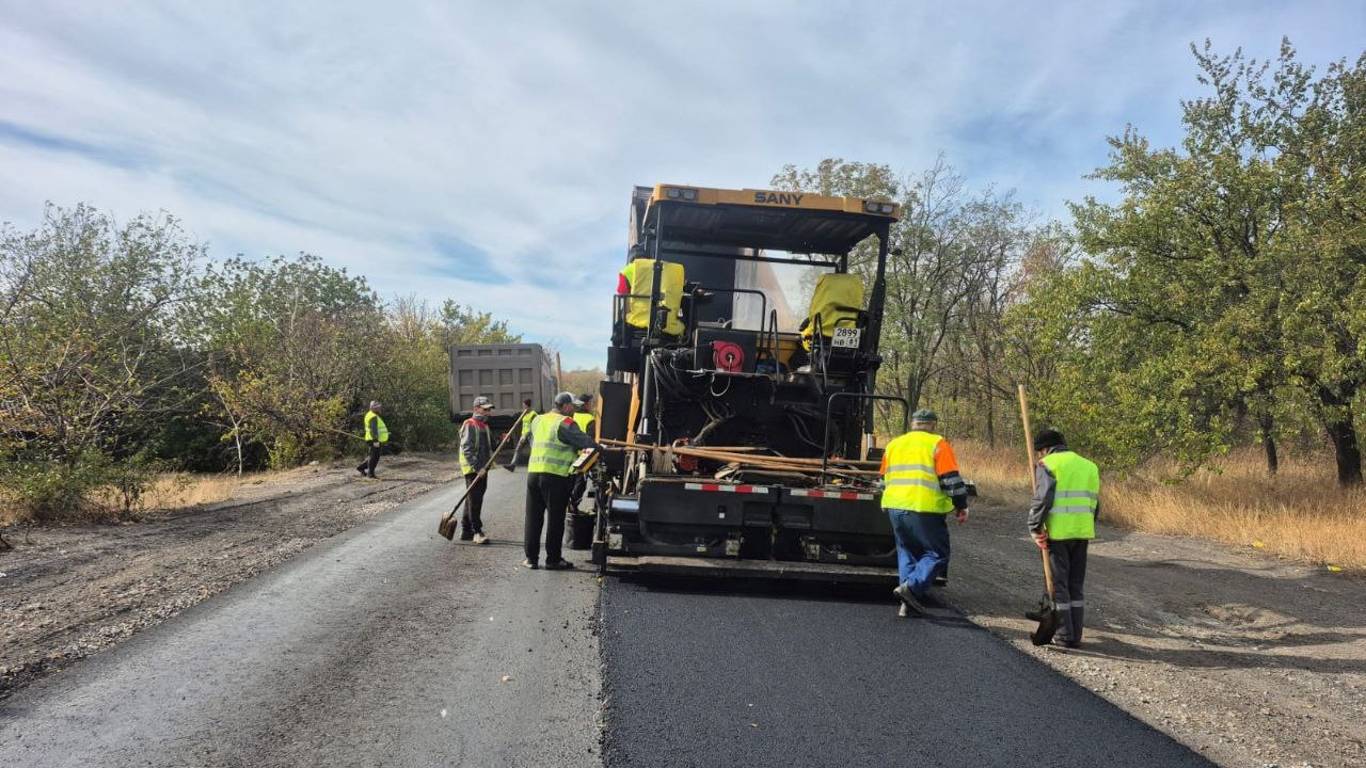 На трассе Садово-Хрустальненский – Красный Луч укладывают новый асфальт, дорога ведёт к мемориалу «Миус-фронт».