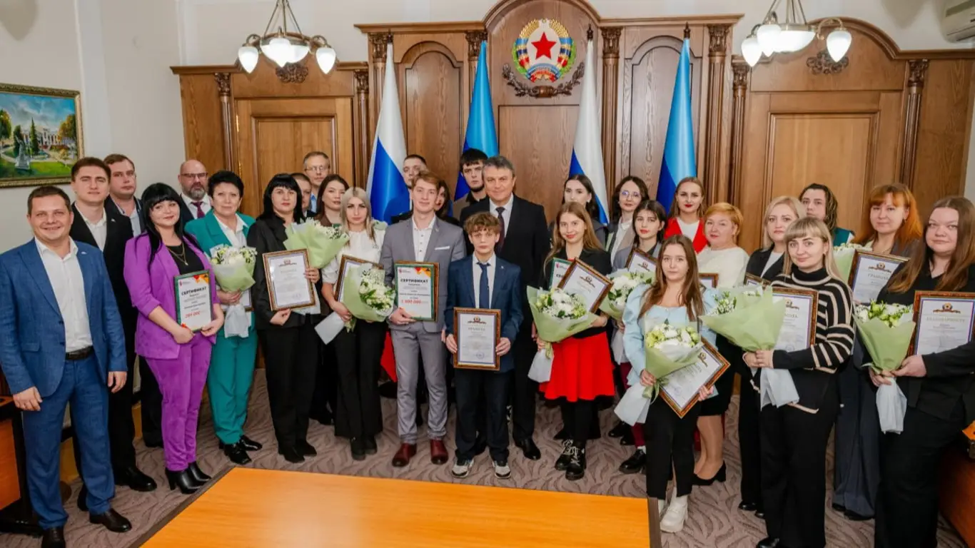 Глава ЛНР Леонид Пасечник вручил награды победителям третьего конкурса «Новая республика – руками молодежи». Лауреатами стали семь молодых жителей республики, которые получили денежные сертификаты на общую сумму более 4 миллионов рублей для реализации своих инициатив.