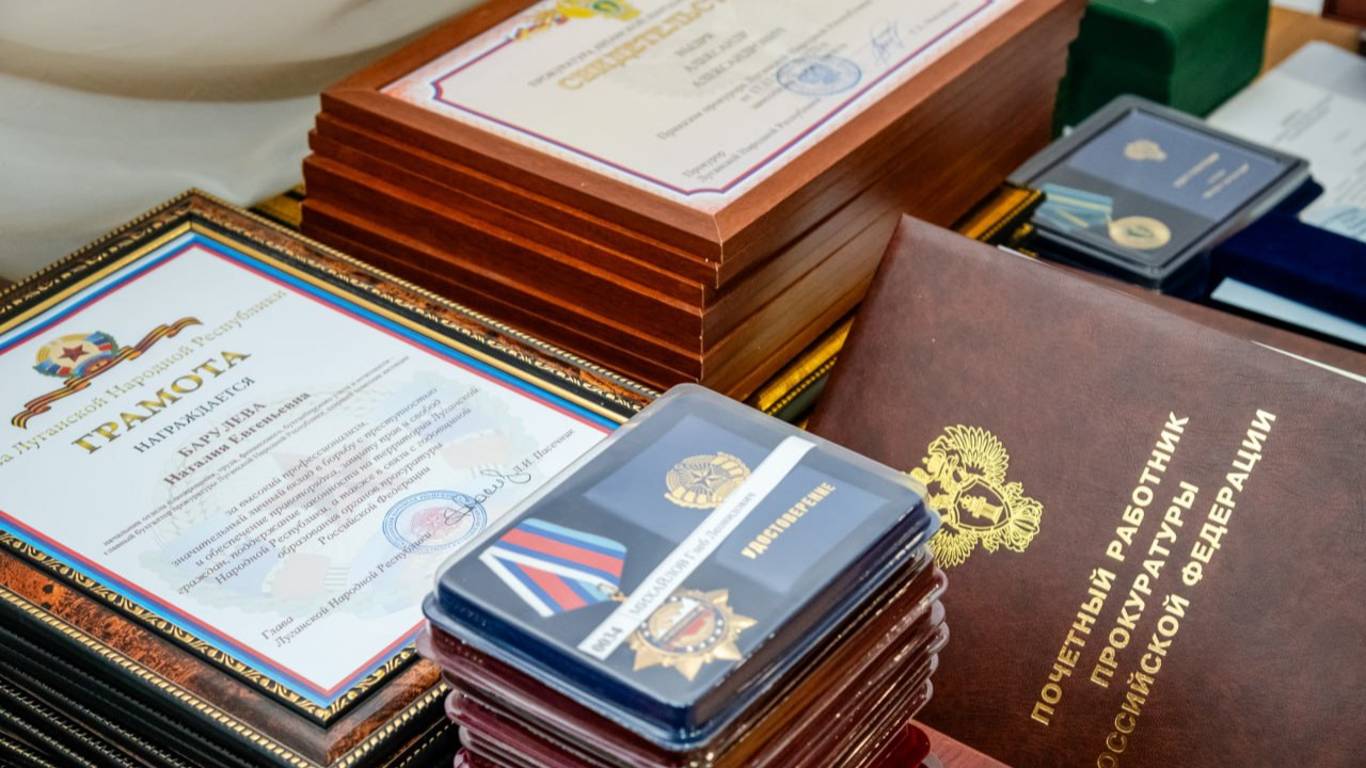 В ходе торжественного мероприятия орденом «За воссоединение» был награжден прокурор ЛНР Глеб Михайлов. Кроме того, более 20 представителей ведомства получили региональные награды. В их числе медали «За заслуги» I и II степени, «За верность долгу», а также грамоты и благодарности главы республики.