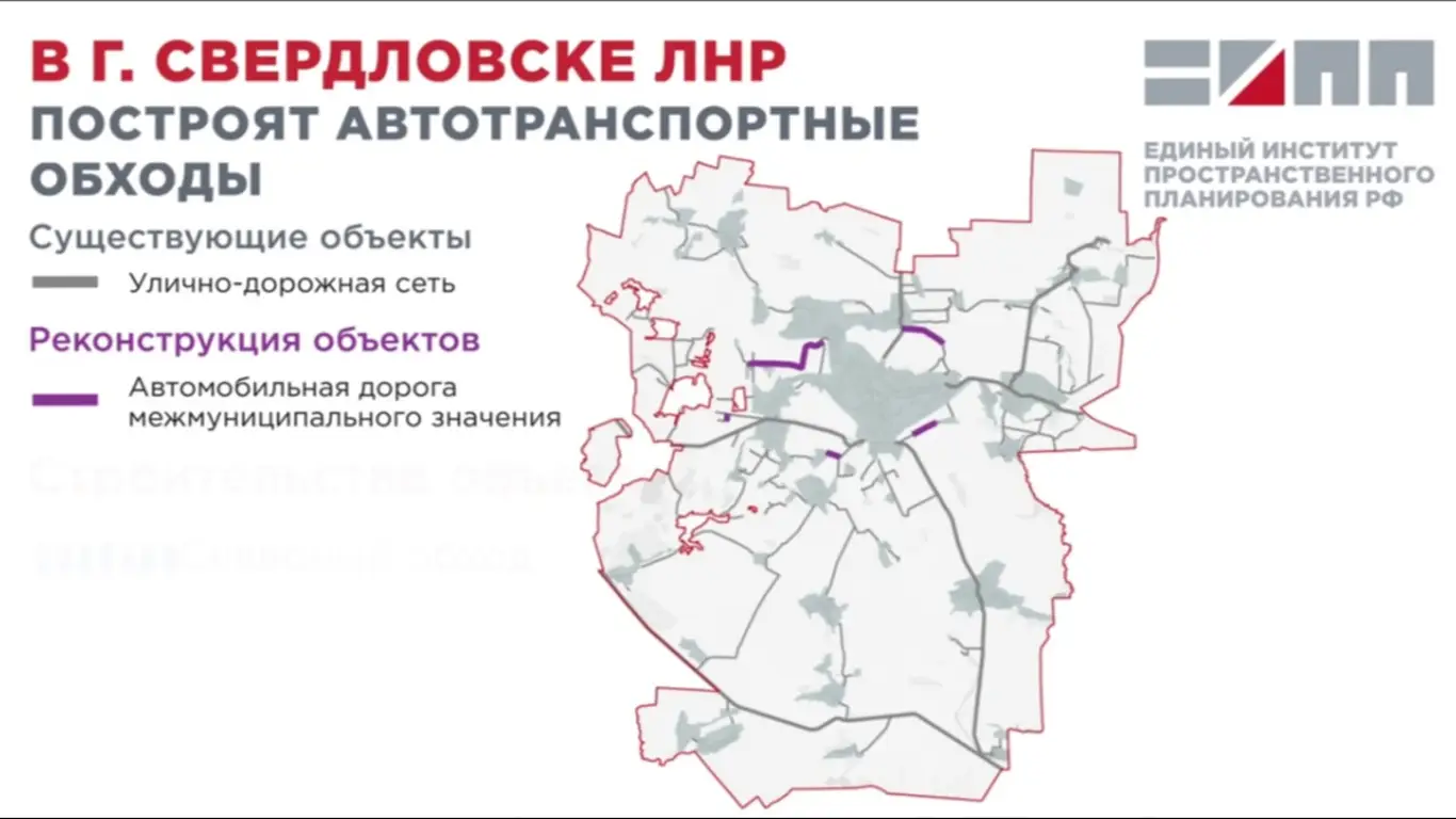 Единый институт пространственного планирования РФ при разработке генерального плана Свердловского муниципального округа ЛНР выступил с предложением о строительстве Северного и Южного автотранспортных обходов города Свердловска.
