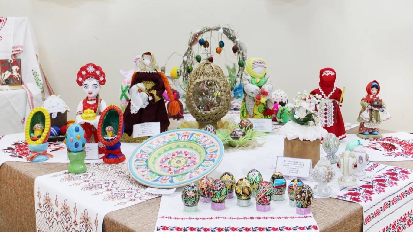 На выставке представлено более 600 работ, объединенных в четыре тематических раздела: «Пасха красная», «Мы едины – мы народ», «Лоскутное поле Луганщины» и «Вернисаж над Луганью».