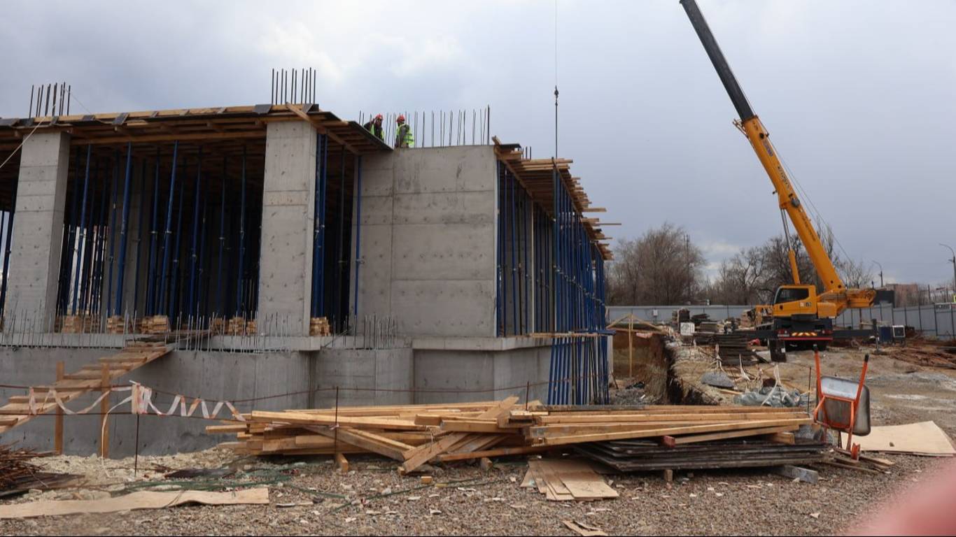 На строительной площадке сейчас идут строительно-монтажные работы. В первой секции уже залили плиту перекрытия цокольного этажа и приступили к армированию пилонов первого этажа. Во второй секции завершено устройство стен цокольного этажа, продолжается армирование плиты перекрытия.