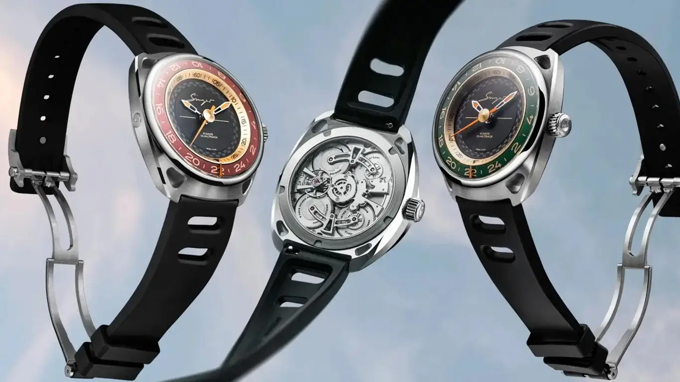 Узнайте о часах DualTrack от Singer Reimagized с инновационной системой отображения двух часовых поясов, корпусом 43 мм и механизмом с запасом хода до 6 дней. Стоимость от 22 500 швейцарских франков.