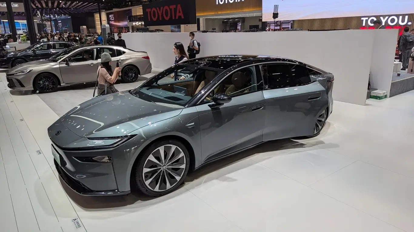 На Пекинском автосалоне Toyota презентовала седан bZ7 — флагман среди электрокаров для Китая. Длина более 5 метров, лидар над лобовым стеклом, система автономного вождения от Momenta. Минималистичный интерьер с панорамной крышей.